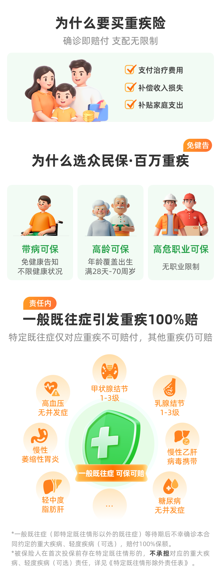 - 保障“真空”人群:因健康/职业/年龄问题,完全买不到其他重疾险的人。有,总比没有强。
