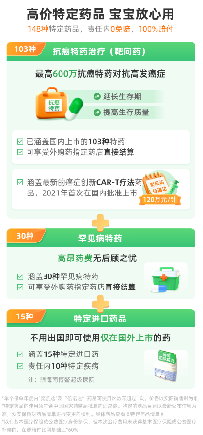 这是判断一款医疗险是否跟得上时代的标准之一。很多抗癌靶向药、罕见病特效药,医院药房没有,需要凭处方到指定药店购买。这份责任明确涵盖“恶性肿瘤-重度”和罕见病的院外特定药品费用,并且写在主险合同里,不是一年一续的附加服务。查看它的药品清单,覆盖了包括CAR-T疗法在内的多种前沿药物,这一点做得比较扎实。