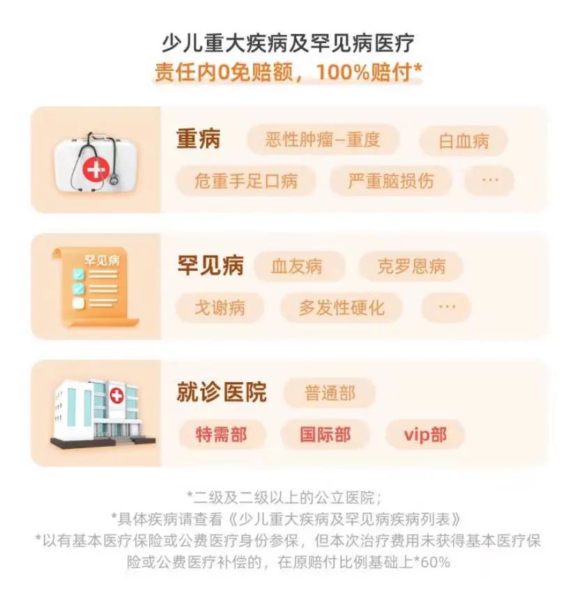 这是被很多人忽略,但极其重要的点。条款写明,针对那37种重疾和13种罕见病,可以报销特需部、国际医疗部、VIP部的住院费用,以及前后30天的门急诊费用。在一线城市优质医疗资源紧张的情况下,这个责任意味着关键时刻可以让孩子住进环境更好、排队时间更短的病房,由专家团队诊疗。这部分保障在普通百万医疗险里通常需要额外加钱购买。
