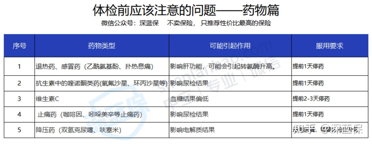 感冒药、消炎药、维生素C、止痛药可能影响结果,体检前3-7天最好停用(需咨询医生)。