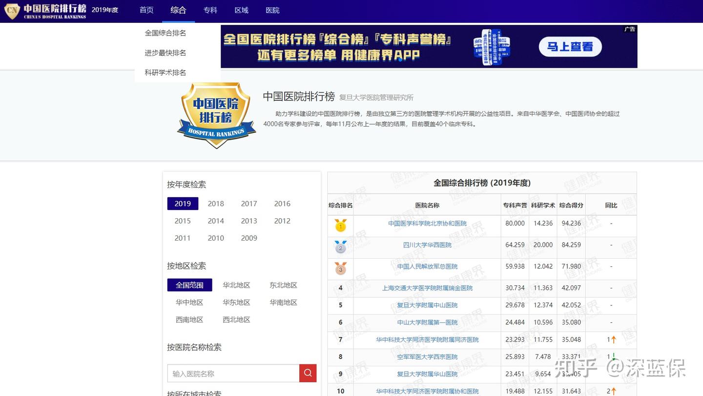 最后放一个宝藏工具:一个查询全国医院排名的网站。