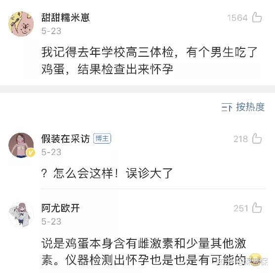 网上那个“男生吃鸡蛋被查出怀孕”的段子,