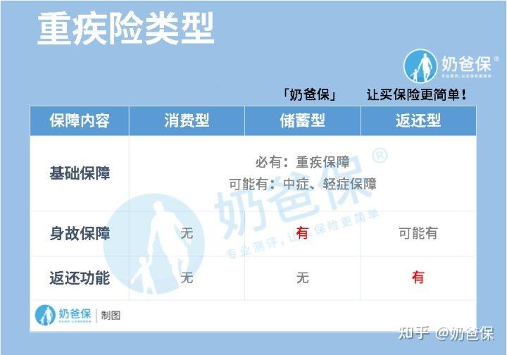 - 储蓄型(含身故):保终身,重疾和身故责任二赔一。如果一生平安,身故时也能赔保额给家人。价格比消费型贵。