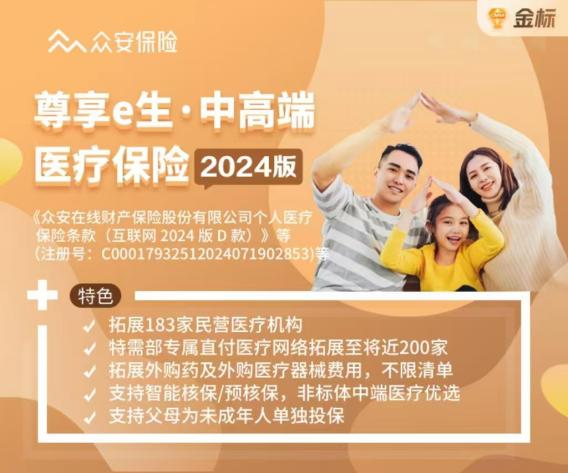 ² 中端医疗推荐:尊享e生·中高端医疗2024版——支持未成年人单独投保,外购药械不限清单
