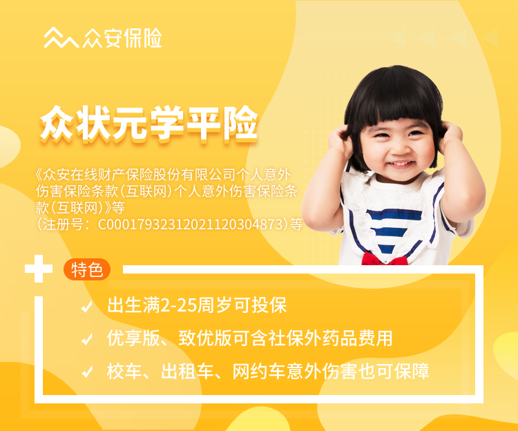 ² 【众安众状元学平险】——拓展社保外,意外住院津贴0免赔天数