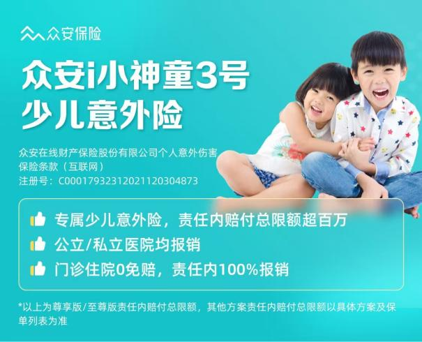 孩子天性好动,摔伤、烫伤、猫抓狗咬太常见了。一份好的少儿意外险,应该重点关注意外医疗责任。我建议家长们看这几点:保额尽量高(建议20万以上),意外医疗最好选0免赔、100%报销、且不限社保用药的。这样孩子被狗咬了打进口疫苗,玩滑板车摔伤用好的敷料,都能报。