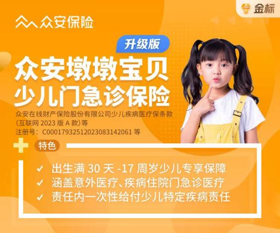 ² 小额医疗推荐:众安墩墩宝贝少儿门急诊(升级版)——儿童专享,含少儿特定疾病