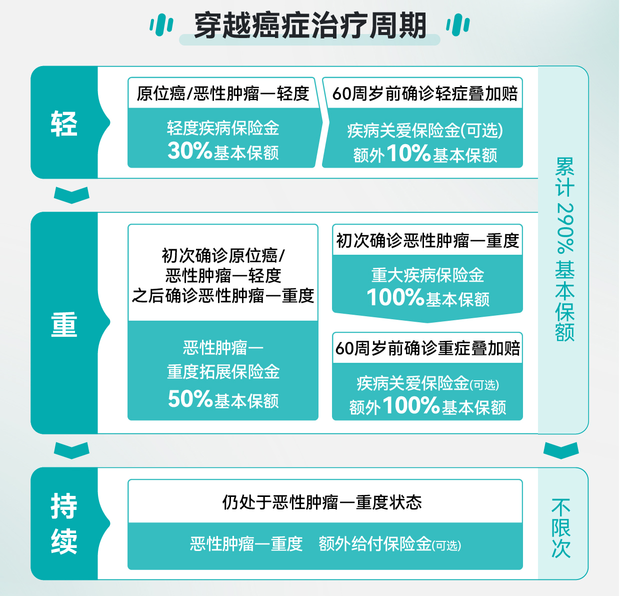 我个人比较看重的是“癌症无限次赔”。癌症复发、转移、持续治疗的风险很高,加上这个责任后,相当于给癌症上了个“无限续杯”的保障,只要符合间隔期要求,新发、复发都能再赔。给孩子做终身保障的话,加上这个会更安心。