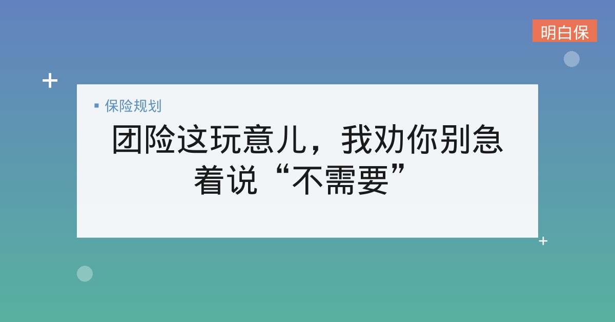 团险这玩意儿,我劝你别急着说“不需要”