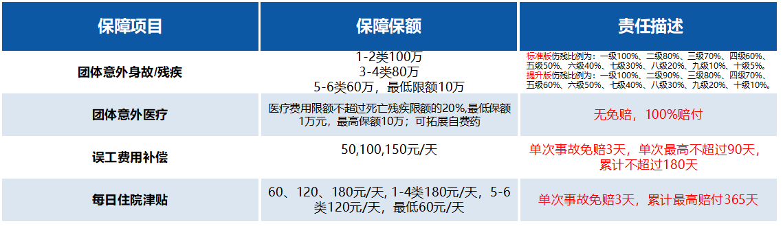 这款产品在价格上比较有竞争力,主打一个性价比。它通常将死亡伤残、医疗费、误工费打包成一个固定保额的方案,比如30万身故/伤残+3万医疗。