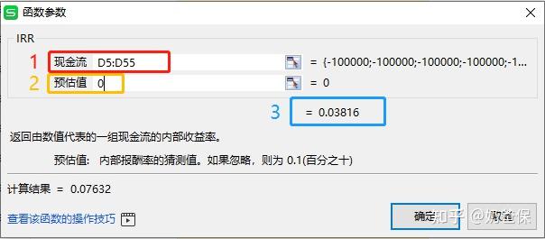 1. 在一列中依次输入现金流。比如,年交10万,交5年,那么前5年就是 -100000。从第N年开始每年领2万,就输入 20000。最后一年退保拿回50万,就输入 50000。