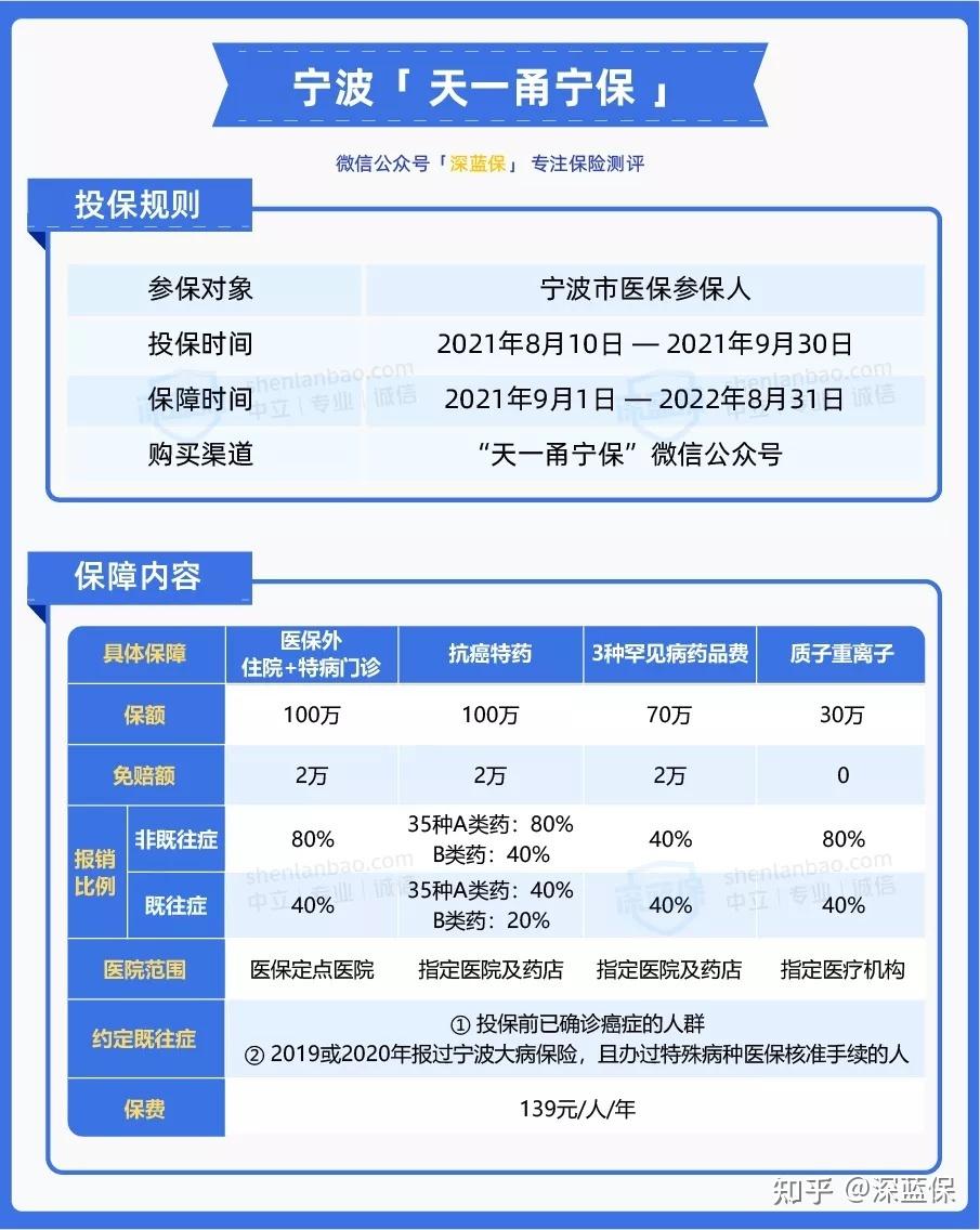 如果你身体欠佳、被百万医疗险除外承保,买它。如果介意医保内不报,可以搭配宁波工惠保(医保内100%报销)。