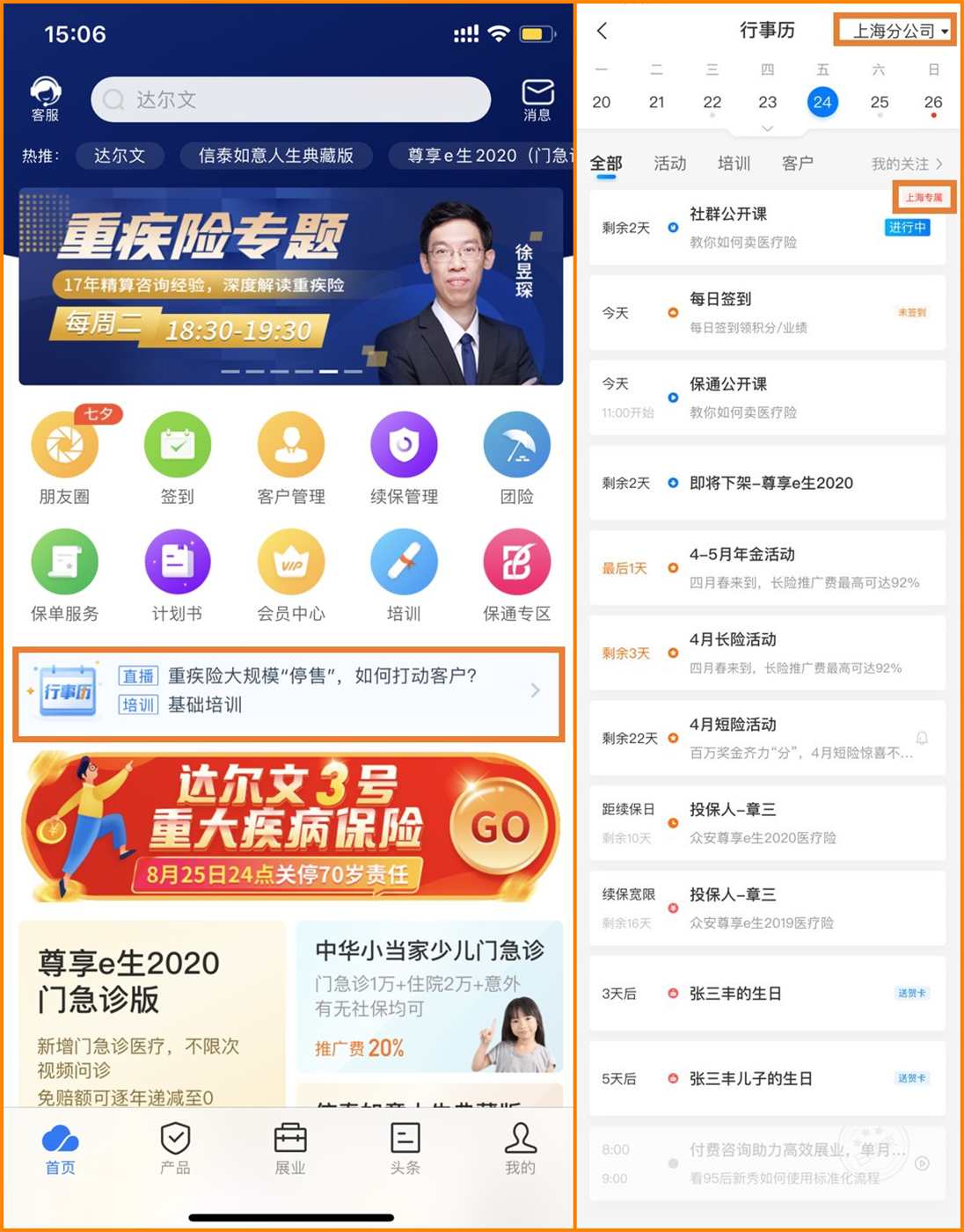 现在行事历功能升级了,新增分公司专属标识。路径:app首页-行事历。打开一看,哪些是总公司的、哪些是我们分公司的活动,一目了然。上周分公司组织了个“家庭保险规划”讲座,我提前在行事历上看到就报名了,现场签了3个客户。