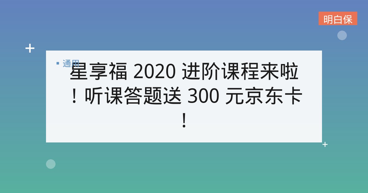 如果2020年9月1日前您在i云保平台曾出单过年金&增额终身寿两类产品,在9月20日前听完星享福2020指定3堂课并且完成答题,且3次答题均为满分的历史年金&终寿出单代理人,即可获得300元京东卡,京东卡卡密将在10月底前以APP消息推送形式发放。