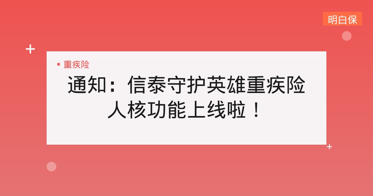 通知:信泰守护英雄重疾险人核功能上线啦!