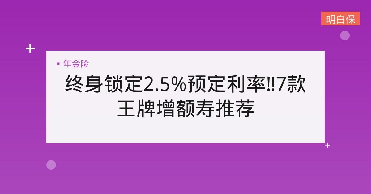 当下,想终身锁定2.5%预定利率,该投哪款增额终身?保通经过层层对比,为大家精挑细选出7款,各有特色和优势,减少大家研究做功课的时间。