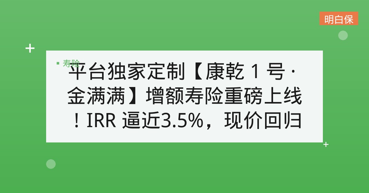 康乾 1 号 · 金满满增额终身寿,平台独家定制 IP 产品!