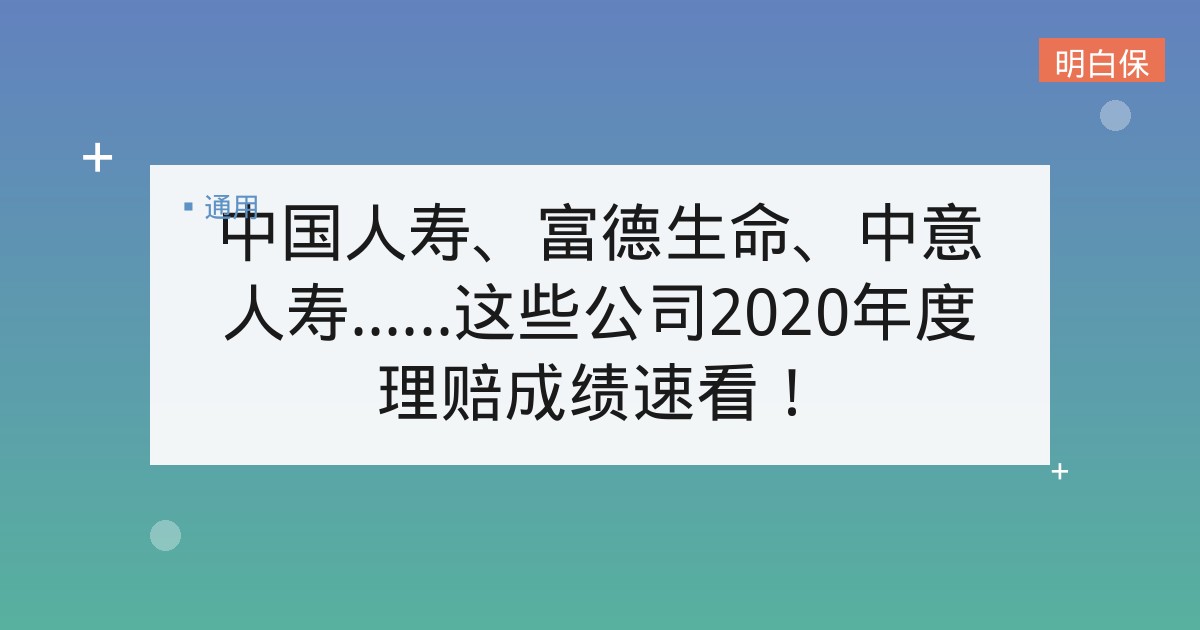 中国人寿、富德生命、中意人寿……这些公司2020年度理赔成绩速看! 📅 2026年1月17日 👁 33 次浏览 📁 保险知识, 理赔指南 在过去的2020年度里,各个保司都取得了哪些不错的成绩?让我们一起来看看: 中国人寿 重磅发布!中国人寿寿险2020理赔服务年报来了 富德生命人寿 富德生命人寿2020年理赔报告 富德生命人寿2020年客户服务白皮书 中意人寿 中意人寿 | 2020年个人保险理赔年报 阳光人寿 阳光人寿理赔年度报告正式发布! 百年人寿 关爱,从未缺席 | 百年人寿2020理赔服务年报 同方人寿 2020年同方全球人寿理赔年报来了 国寿财险 国寿财险2020成绩单新鲜出炉,表现太漂亮了 国富人寿 国富人寿2020年理赔服务年报 泰康人寿 泰康人寿2020年度理赔白皮书重磅发布 太平人寿 重磅发布!《太平人寿2020年度理赔服务报告》 国华人寿 国华人寿2020年度理赔年报 平安人寿 赔付352亿,平安人寿2020理赔年报发布! 招商信诺人寿 【重磅发布】2020招商信诺人寿理赔年报 农银人寿 农银人寿2020年理赔年报 国联人寿 国联人寿2020年理赔服务年报来啦 北京人寿 北京人寿2020年理赔服务年报来了 北大方正人寿 北大方正人寿2020年理赔年报 中国人保寿险 2020人保寿险理赔年报 长城人寿 2020年长城人寿理赔服务年报 天安人寿 天安人寿保险股份有限公司2020年度理赔年报 前海人寿 前海人寿发布2020年理赔年报! 📚 相关阅读推荐 👉 赔付26亿!平安健康保险2020年理赔报告发布! 👉 【硬核服务】2020年理赔年报来啦!你想了解的都在这里~ 👉 保险界”黑马”横琴人寿,究竟是一家什么样的公司? 👉 前海人寿发布2020年理赔年报! 相关推荐›【一图看懂】和谐健康慧馨安少儿终身重疾(甄选版): 可选二次重疾不分组,终身保障›平台独家定制【康乾 1 号 · 金满满】增额寿险重磅上线!IRR 逼近3.5%,现价回归快!›扒!扒光退保黑产!›买重疾险别光看价格,这5个细节没看清,理赔时准后悔›新年做增员,邀 1 人最高 394 元现金奖励! 标签: 中国人寿, 同方全球, 理赔, 百年人寿, 阳光人寿