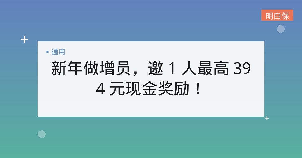 新年做增员,邀 1 人最高 394 元现金奖励!