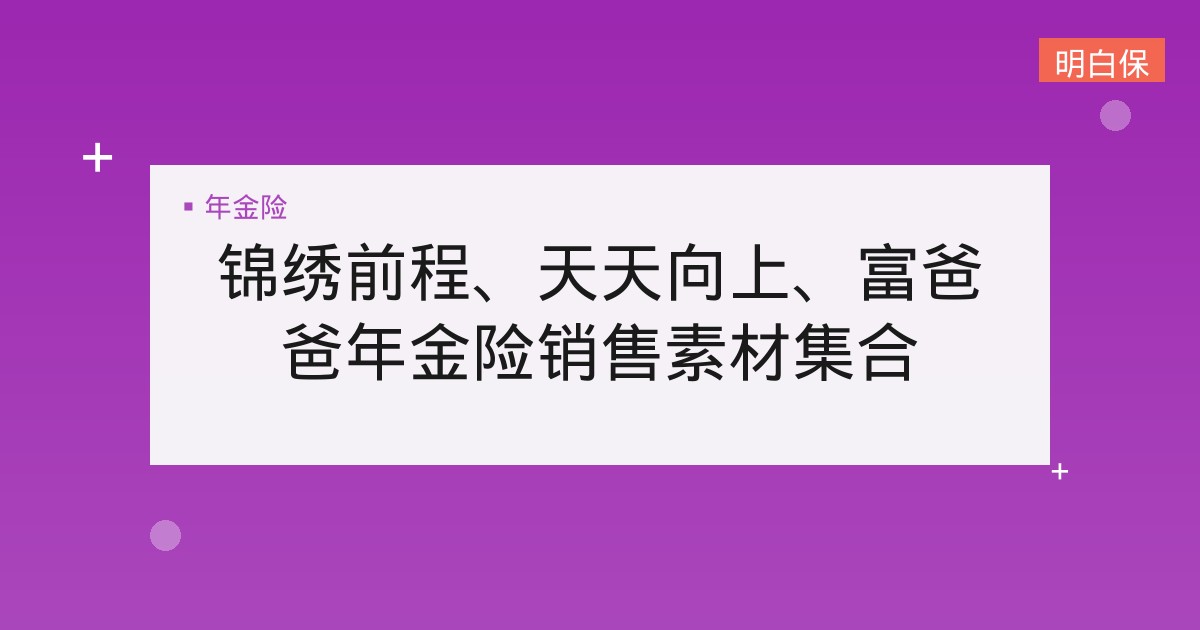 为了方便老师们更高效地推广年金险,我们特别整理了开门红三款年金险 —— 信美天天向上、恒大锦绣前程、渤海富爸爸的推广素材,包含 销售问答、投保案例和培训课程。