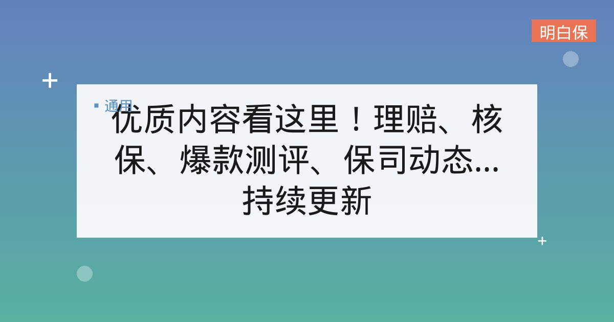 优质内容看这里!理赔、核保、爆款测评、保司动态…持续更新 📅 2026年1月26日 👁 30 次浏览 📁 产品测评, 保险代理人, 保险知识, 核保攻略, 理赔指南 很多老师反馈,找不到想要的内容,头条MM呕心沥血,整合了一些优质内容专题,汇总在这里,给老师们取用! 这些专题每天会持续更新,请老师们多多关注~~ 展业50问 小公司分支机构少,理赔会很麻烦吗?持续更新中 产品测评 都是王炸!10款开门红产品亮点大全,来了! 理赔案例 185篇产品理赔案例,总能找到你想要的! 保司新闻 众安、横琴、信泰、华贵、百年人寿…这些保险公司靠谱吗? 玩转i云保、保通 i云保和保通是什么关系?怎么加入保通? 核保大揭秘 核保50问 | 体检查出高血压怎么买保险?看这1篇就够了! 云保百科 重疾险、医疗险、年金险……get这些,再也不怕买错了! 📚 相关阅读推荐 👉 做了不起的探索者:保通【星空计划】第一期团队长培训总结 👉 赔付26亿!平安健康保险2020年理赔报告发布! 👉 【硬核服务】2020年理赔年报来啦!你想了解的都在这里~ 👉 保险界”黑马”横琴人寿,究竟是一家什么样的公司? 相关推荐›【一图看懂】信泰如意尊(星火版)终身寿险:权益写入合同,表现更优秀!›【一图看懂】阳光人寿阳光寿C款养老年金(个养版)›【金标认证】恒大北极星养老年金保险›癌症无限次赔!重疾险性价比之王,换它了!›一图读懂核保宽松产品9:太平洋蓝医保 标签: i云保, 理赔, 理赔案例, 百年人寿
