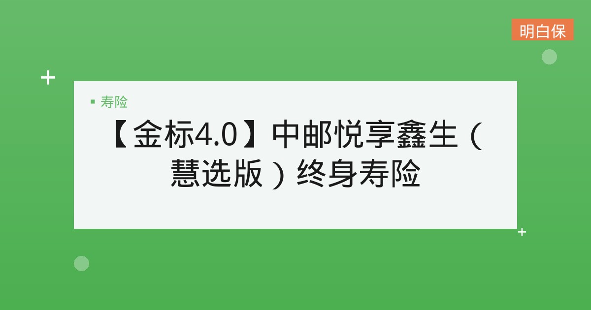 【金标4.0】中邮悦享鑫生(慧选版)终身寿险:一份可以“长大”的终身守护