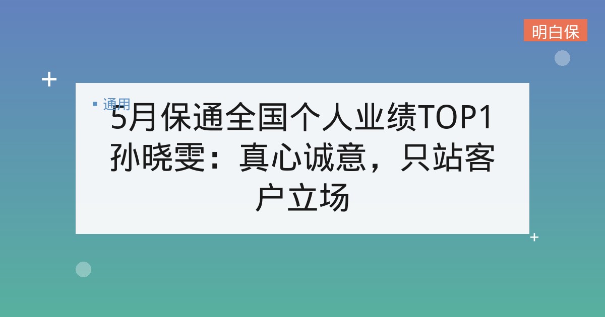 5月保通全国个人业绩TOP1孙晓雯:真心诚意,只站客户立场 孙晓雯,来自保通上海分公司,以 374,977 的优秀业绩,成为了保通 5 月全国个人业绩 TOP1 。 本科毕业于上海... 📅 2026-02-07 👁 20