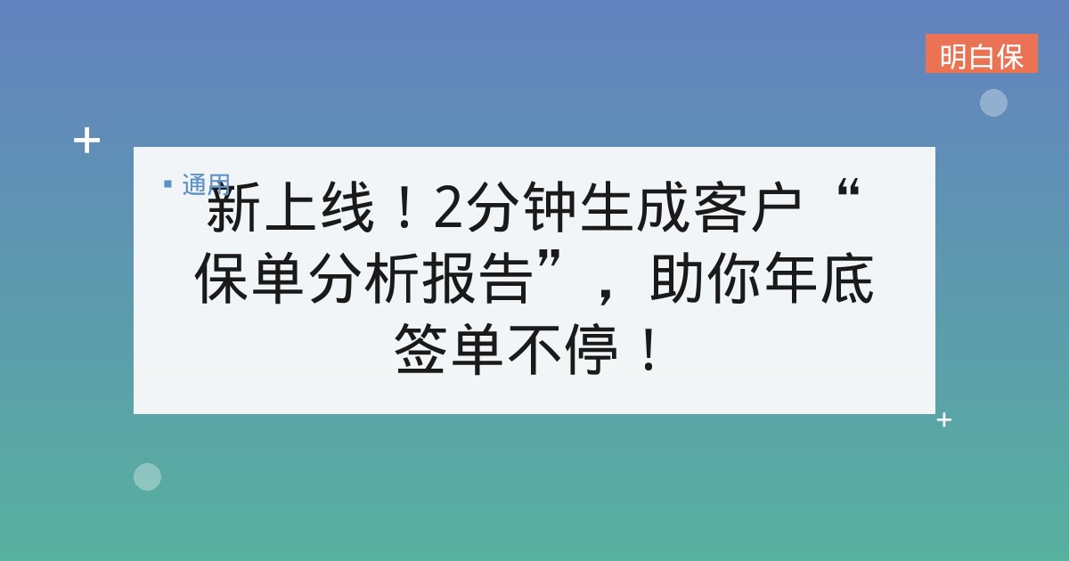 新上线!2分钟生成客户“保单分析报告”,助你年底签单不停! 年底体检高峰季来了!不止是我们的身体需要体检,保单也需要: 我到底买了什么保险,是否适合自己? 都解决了什么风险?还有哪... 📅 2026-02-09 👁 20