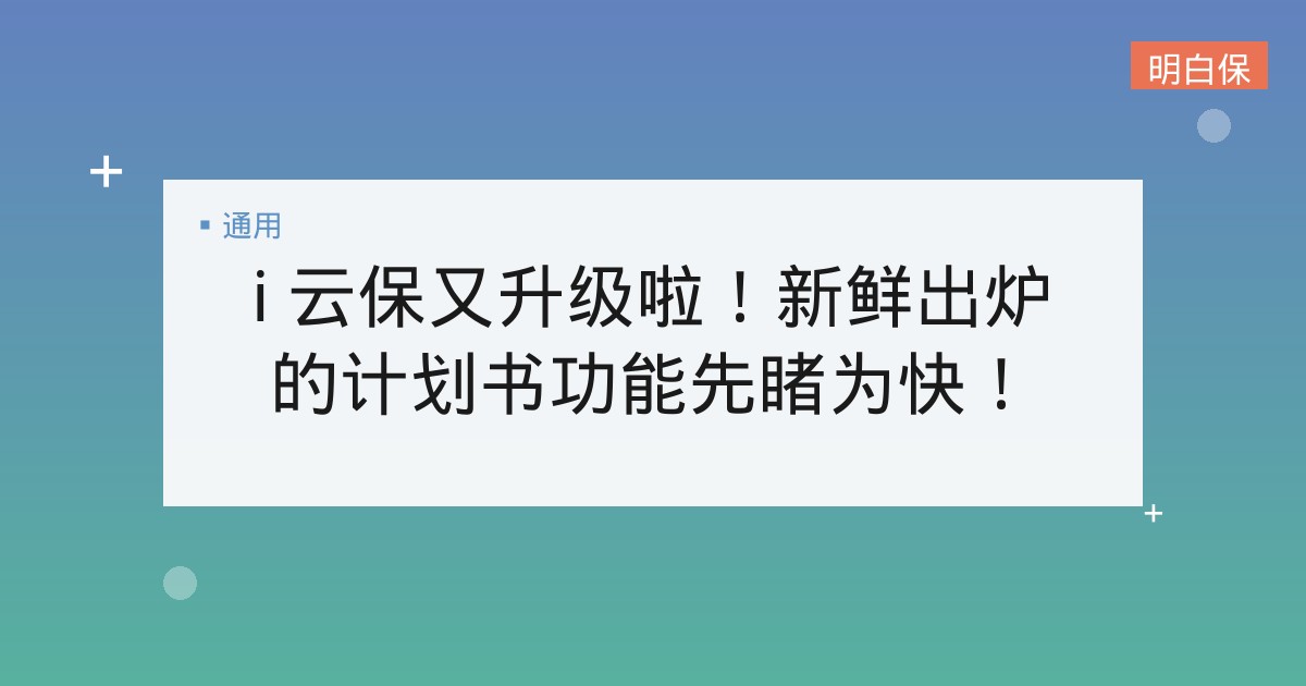 i 云保又升级啦!新鲜出炉的计划书功能先睹为快! 尊敬的各位代理人老师们,大家好,作为 i 云保计划书模块的产品经理大麦,我希望跟大家分享一下 4.6.0 新上线的组合投... 📅 2026-02-19 👁 32