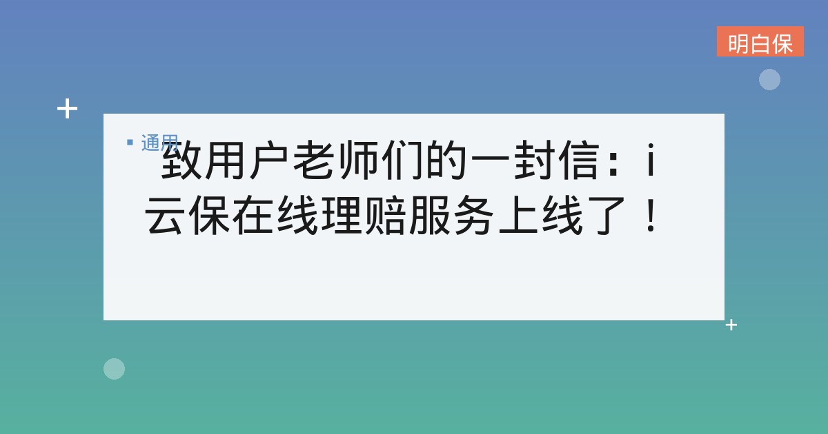 致用户老师们的一封信:i 云保在线理赔服务上线了! 各位老师,大家好!感谢大家一直以来对 i 云保的信任,也感谢在我们一同走过的四个春夏秋冬里,你们对 i 云保的帮助和支持... 📅 2026-01-19 👁 28