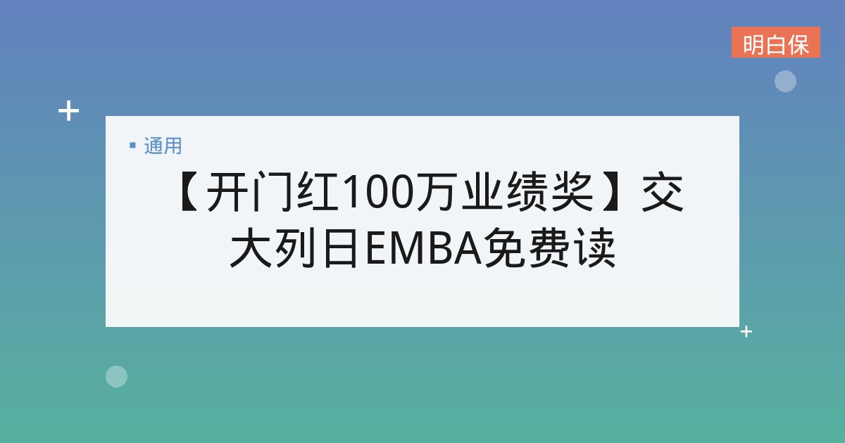 【开门红100万业绩奖】交大列日EMBA免费读 i云保2021开门红来啦,本次活动我们为大家准备了一个特别不一样的大奖——达到100万业绩可获得【交大列日EMBA免费读... 📅 2026-01-20 👁 17