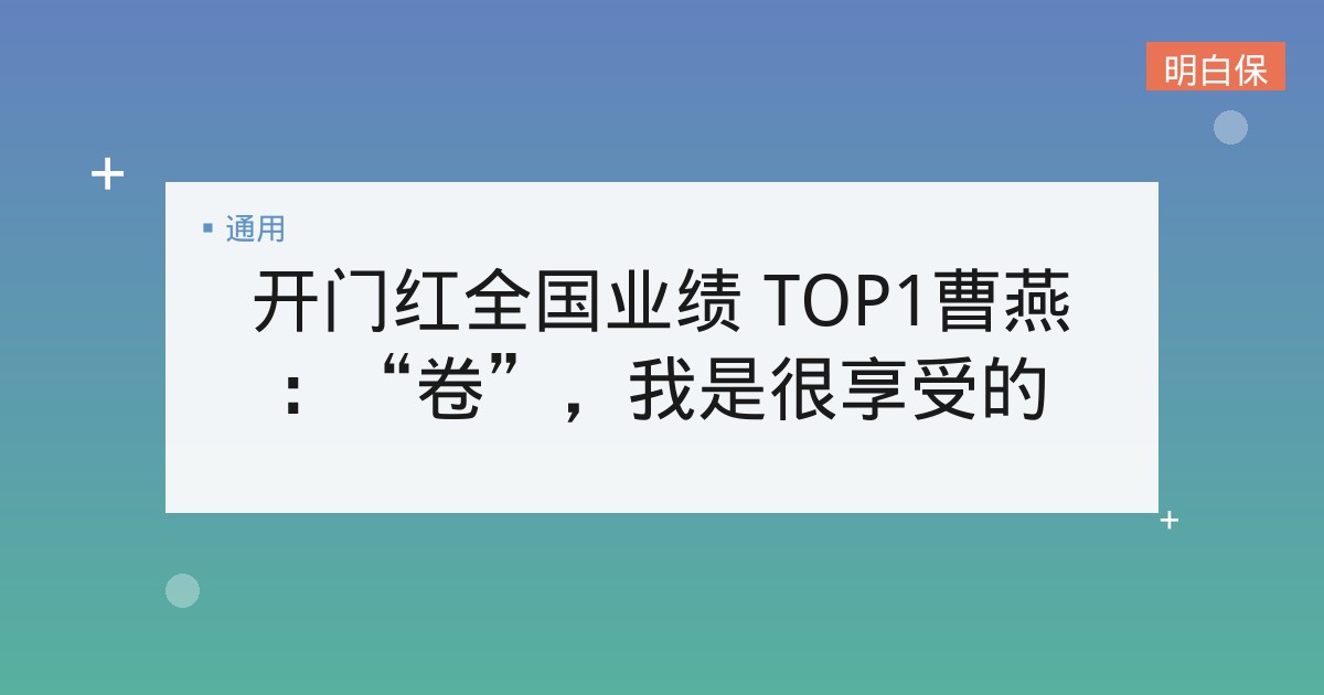 开门红全国业绩 TOP1曹燕:“卷”,我是很享受的 本期保通人物:曹燕 曹燕,保通深圳分公司翌培总监、销售总监,2022年12月全国保通业绩TOP1,同时也是2023年开门... 📅 2026-01-21 👁 19