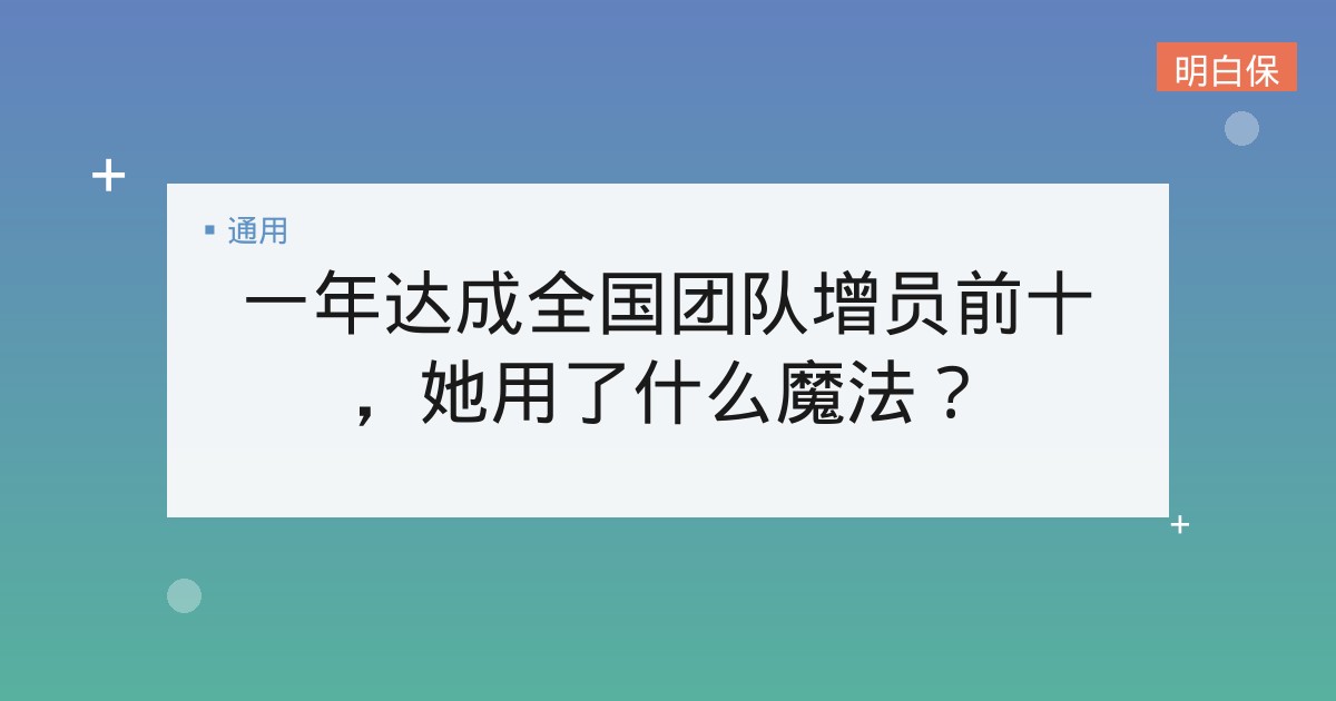 一年达成全国团队增员前十,她用了什么魔法? 在保险行业的舞台上一直活跃着诸多的女性,她们凭借女性特有的亲和力和耐心细致的服务收获了许多客户的青睐,那今天我们来介绍一... 📅 2026-01-25 👁 23