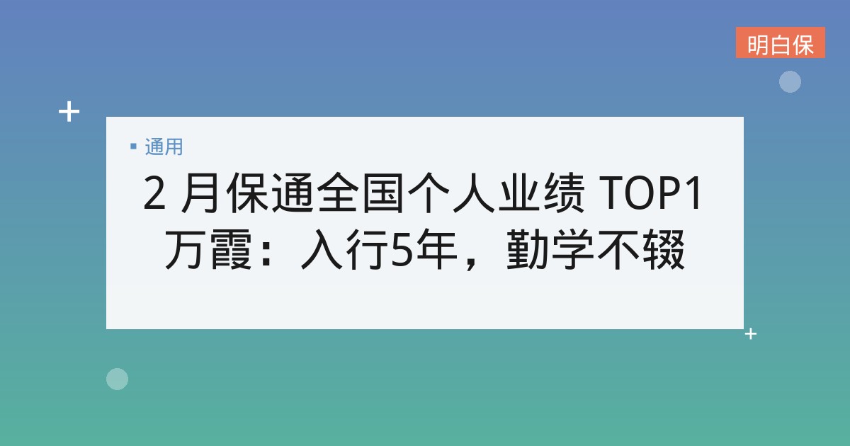 2 月保通全国个人业绩 TOP1万霞:入行5年,勤学不辍 万霞,来自保通重庆分公司,2023 年 2 月全国个人业绩 TOP1,当月业绩高达 1,040,081 。在如此惊人的成... 📅 2026-01-18 👁 19