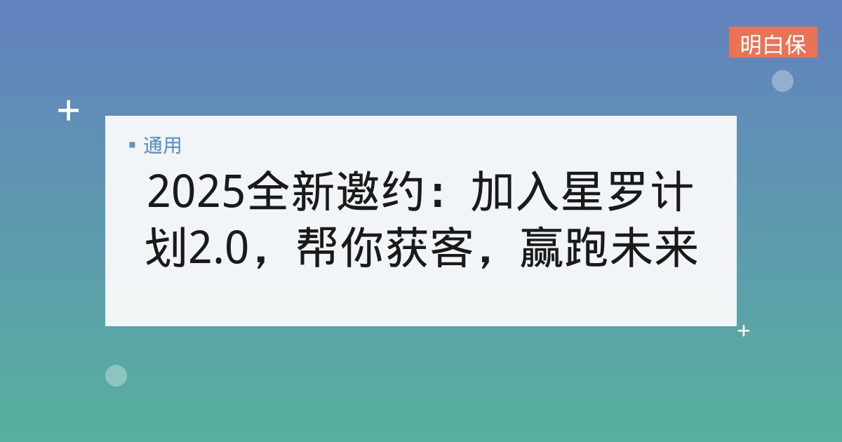 2025全新邀约:加入星罗计划2.0,帮你获客,赢跑未来 在科技赋能保险代理人的道路上,i云保·保通步履不停。 4月15日,保通自媒体赋能项目——星罗计划2.0即将全网发布,并同... 📅 2026-01-18 👁 16
