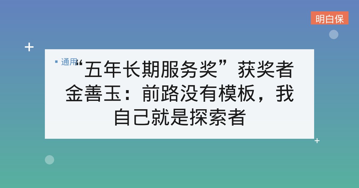 “五年长期服务奖”获奖者金善玉:前路没有模板,我自己就是探索者 五年耕耘:从专属代理人到客观经纪人 问:在这5年里,您个人最大的收获是什么呢? 金善玉: 最大的收获是我对保险行业、公司... 📅 2026-01-24 👁 28