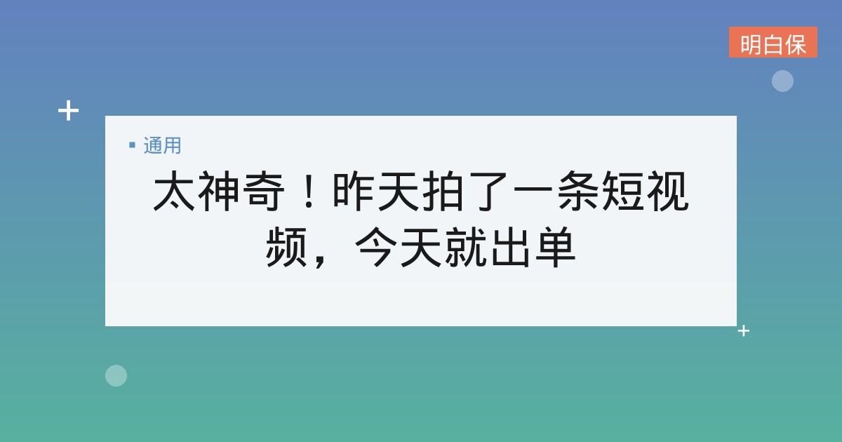 太神奇!昨天拍了一条短视频,今天就出单 有保通代理人拍了一条短视频 推广平台新品—众安护甲安康 一款市场稀缺的甲状腺癌复发险 第二天就有客户咨询,且成功签单 这... 📅 2025-12-02 👁 18