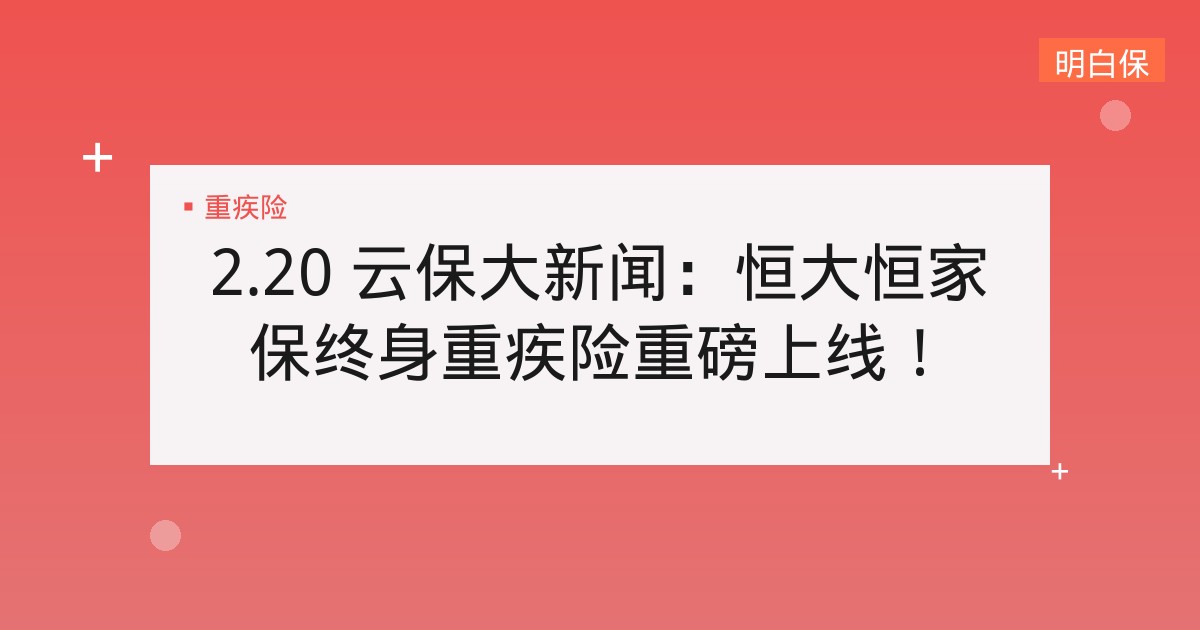 2.20 云保大新闻:恒大恒家保终身重疾险重磅上线! ▲ 点击图片,播放视频 本期的主要内容有: 1 市场爆款【恒大恒家保终身重疾险】重磅上线! 产品5大特色: (... 📅 2026-01-23 👁 17