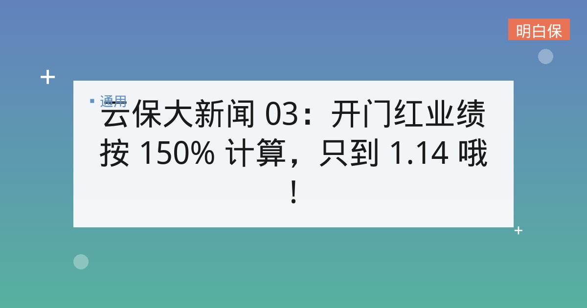 云保大新闻 03:开门红业绩按 150% 计算,只到 1.14 哦! 本期主要内容有: 开门红业绩按150%计算,只到1月14日哦! i云保2020开门红已经开始了,你出单了吗... 📅 2026-01-24 👁 19