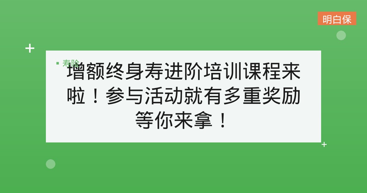 增额终身寿进阶培训课程来啦!参与活动就有多重奖励等你来拿! 各位i云保的小伙伴们好呀,我们【增额终身寿特训营进阶培训】系列将在9.16-9.30开营啦! 没赶上上一期终身寿小白营嘛... 📅 2026-01-21 👁 38