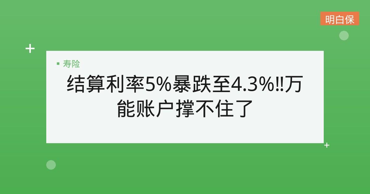 结算利率5%暴跌至4.3%‼️万能账户撑不住了 寿险预定利率是否会调整,官方还没有定论,但万能账户貌似已经撑不住了! 保通平台对接的万能账户有数十款,挑选其中40款,对... 📅 2026-01-22 👁 31