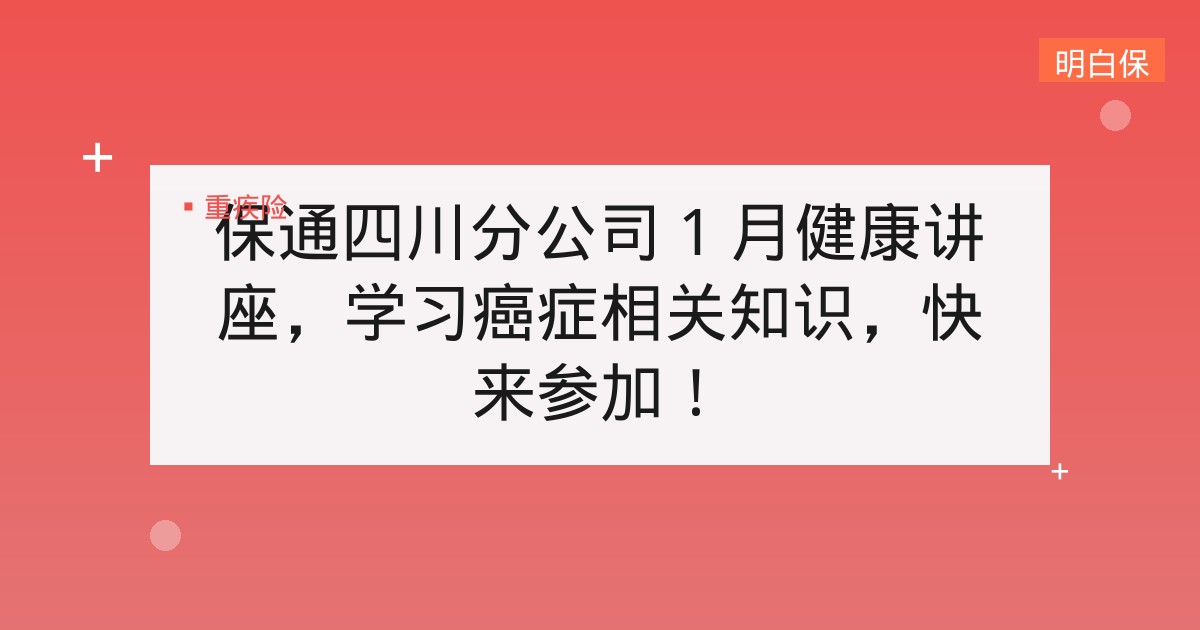 保通四川分公司 1 月健康讲座,学习癌症相关知识,快来参加! 讲座主题:癌症 “早”、“中”、“晚” 期的救命稻草 参与名额:50 人 活动时间:2022年1月13日 活动地址:四川... 📅 2026-01-21 👁 17