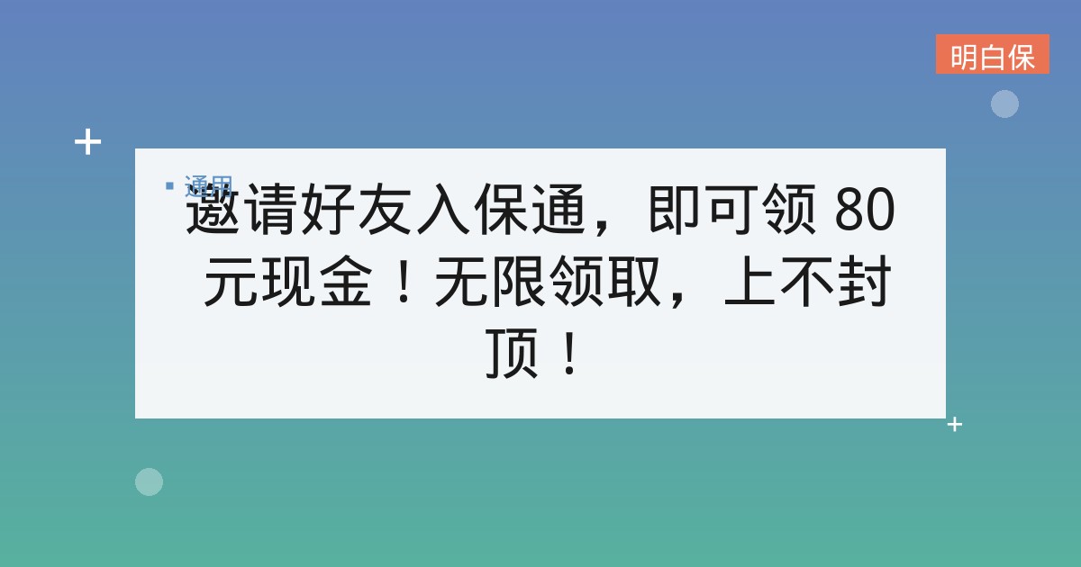 邀请好友入保通,即可领 80 元现金!无限领取,上不封顶! 保险事业路途漫漫,与好友一起并肩前行,岂不是更加愉快?! 更何况,在这个八月邀请好友加入保通保险,还可以获得 “壕” 无... 📅 2026-01-14 👁 26