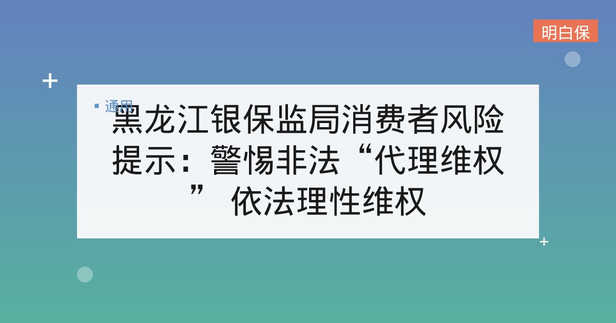 黑龙江银保监局消费者风险提示:警惕非法“代理维权” 依法理性维权 近年来,某些非法组织或者个人打着为金融消费者维权的幌子,怂恿、诱导金融消费者委托其代理维权,牟取非法利益,严重扰乱金融市... 📅 2026-01-15 👁 18