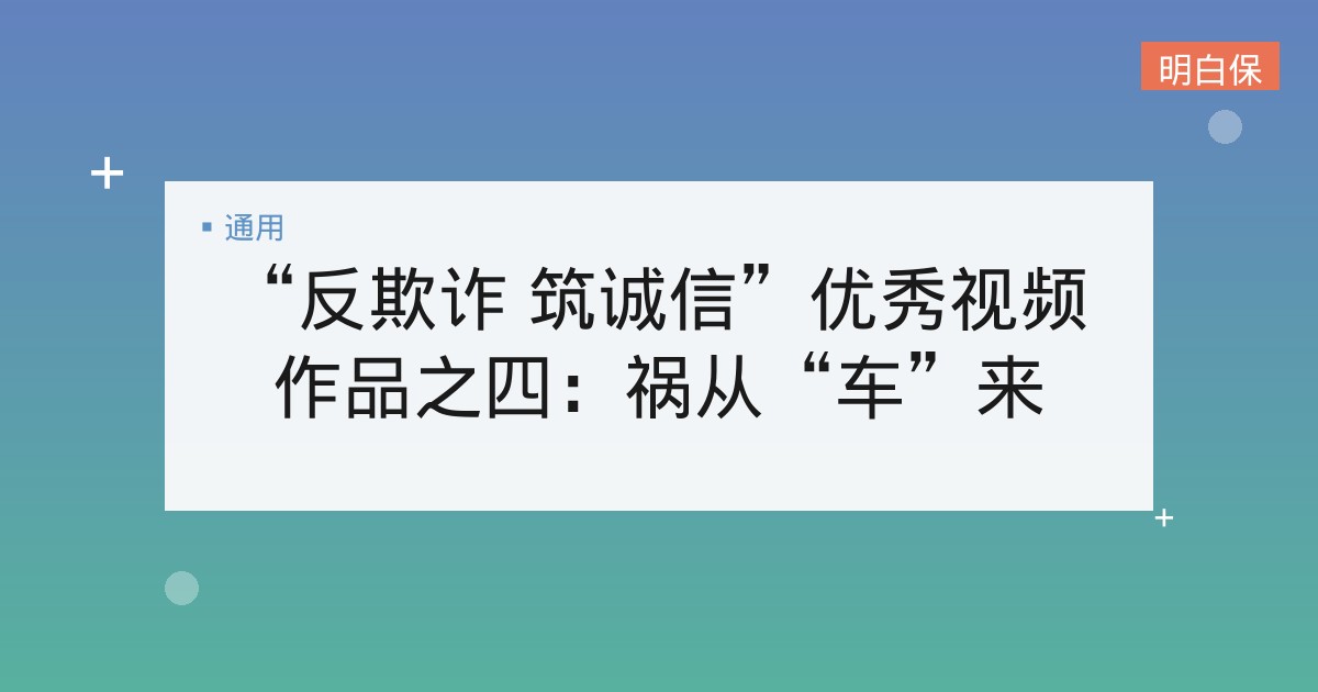 “反欺诈 筑诚信”优秀视频作品之四:祸从“车”来 “反欺诈 筑诚信”优秀视频作品之四:祸从“车”来——深度剖析车险欺诈的危害与防范 “反欺诈 筑诚信”优秀视频作品之四:祸... 📅 2025-12-07 👁 19