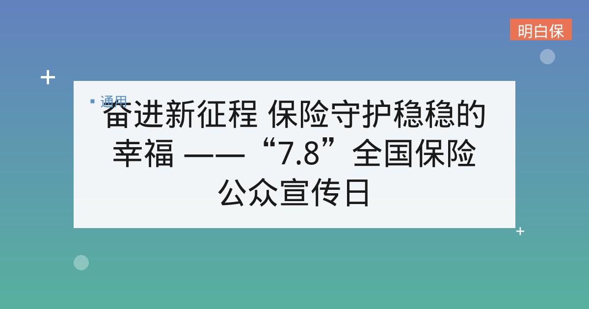 奋进新征程 保险守护稳稳的幸福 ——“7.8”全国保险公众宣传日 2022年是党的二十大召开之年,是实施“十四五”规划关键之年,是迈上民族全面复兴第二个百年奋斗目标新征程的重要一年,也是... 📅 2025-12-08 👁 26