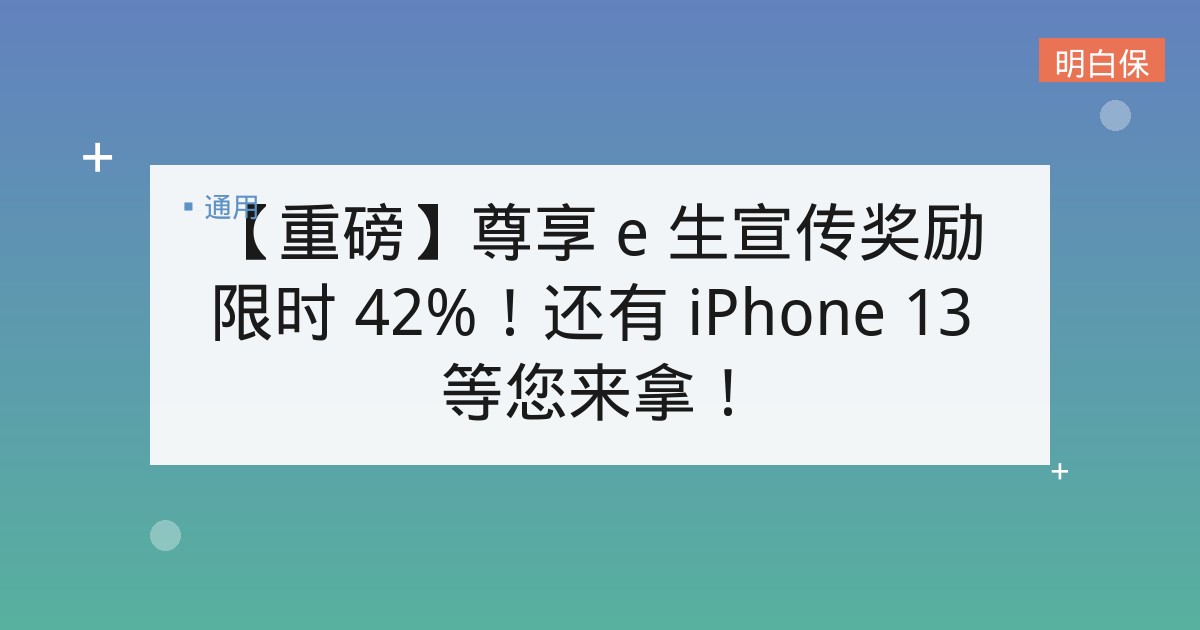 【重磅】尊享 e 生宣传奖励限时 42%!还有 iPhone 13 等您来拿! 各位老师,九月众安系产品迎来限时加码活动!还有 iPhone13 pro、戴森吹风机等梯度奖励等您来... 📅 2025-12-06 👁 23
