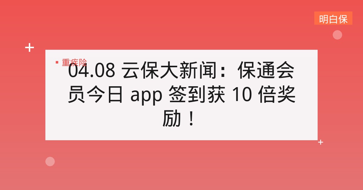04.08 云保大新闻:保通会员今日 app 签到获 10 倍奖励! ▲ 点击图片,播放视频 本期主要内容有: 01 大咖直播预告:你真的会卖重疾险吗? 你对于重疾险的知识点掌握得... 📅 2025-12-05 👁 27