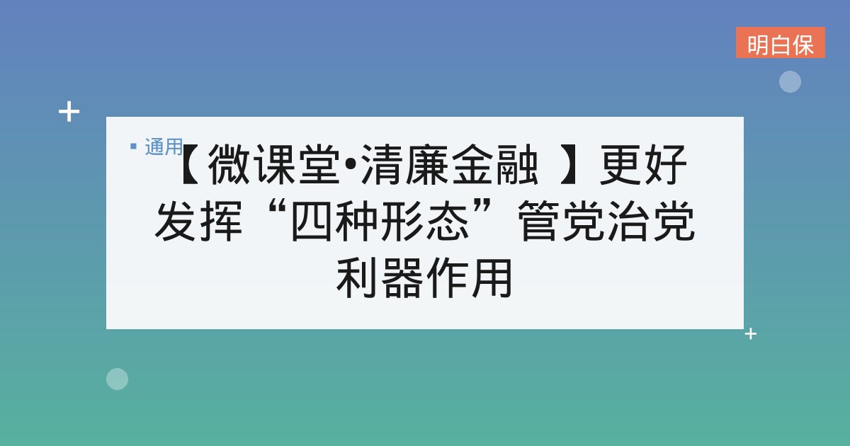 【微课堂•清廉金融 】更好发挥“四种形态”管党治党利器作用 为贯彻落实好上海银保监局《关于深化上海银行业保险业清廉金融文化建设的意见》精神,联动行业做实做细做常清廉金融文化的宣导宣... 📅 2025-12-04 👁 31