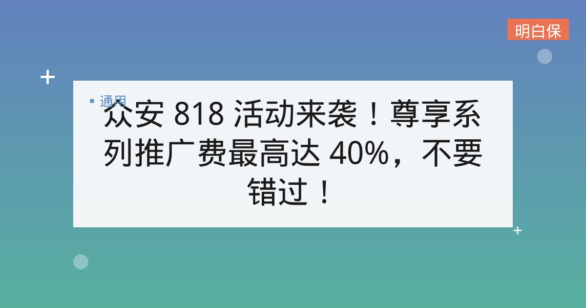 众安 818 活动来袭!尊享系列推广费最高达 40%,不要错过! 好消息!众安尊享系列 818 专场活动就要开始啦! 活动期间,尊享系列产品的推广费最高达到 40%,现在就来看... 📅 2025-12-03 👁 25